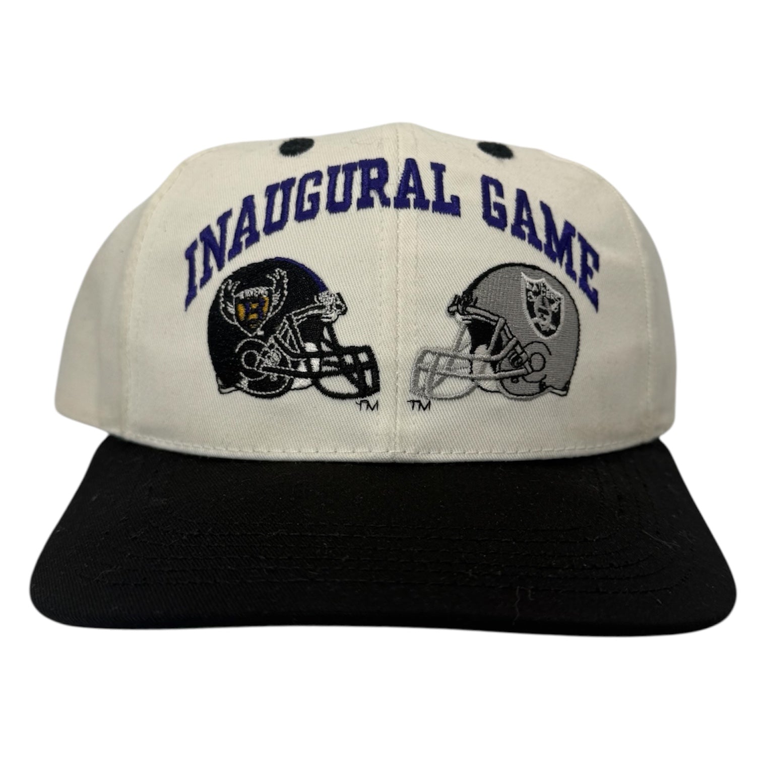 Vintage 1996 Baltimore Ravens vs Oakland Raiders Inaugural Game Snapback - no flaws.